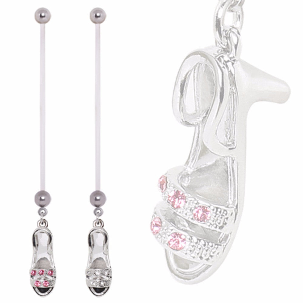 Crafted especially for a pregnant tummy our BioFlex Barbells are comfortable and flexible, they can be customized and adjusted as needed so that you can wear it throughout your entire term. BioFlex is also fully autoclavable. This features a Gemmed Heeled charm that brings the fun for summer tummy exposing outfits. Available with Pink or Clear gems this funky belly ring is ready for beachside lounging.