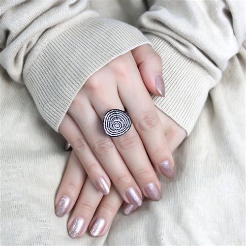 DA128 IP Black(Ion Plating) Stainless Steel Ring with AAA Grade CZ in Clear
