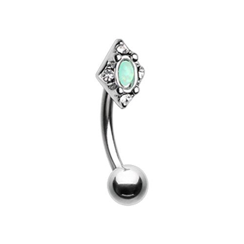 Diamond Ornate WildKlass Curved Barbell Eyebrow Ring (Clear/Mint Green)