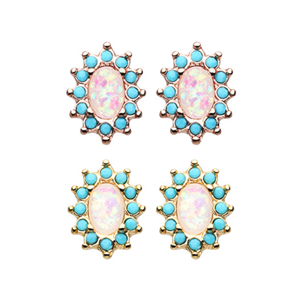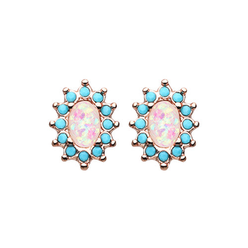 Gold, Rose Gold Elegant Opal Turquoise Ear Stud Earrings