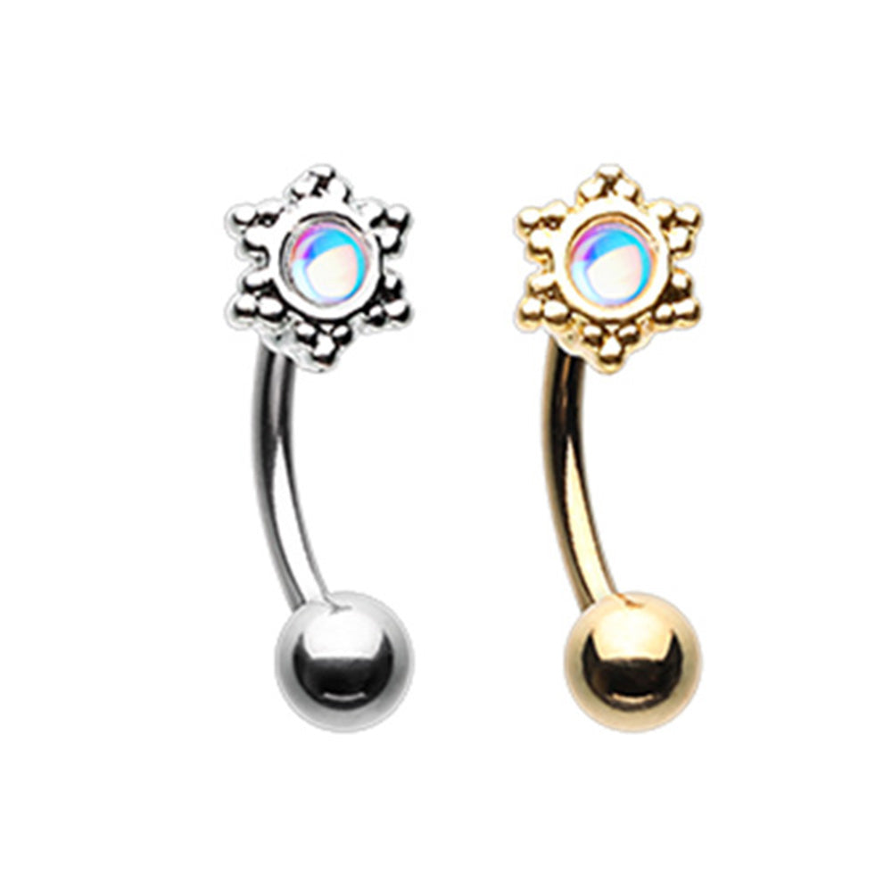 Golden & Silver Revo Illumilating Snowflake Curved Barbell Eyebrow Ring