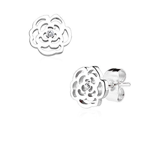 Rose Blossom with Crystal 316L Stainless Steel WildKlass Earring Studs Pair