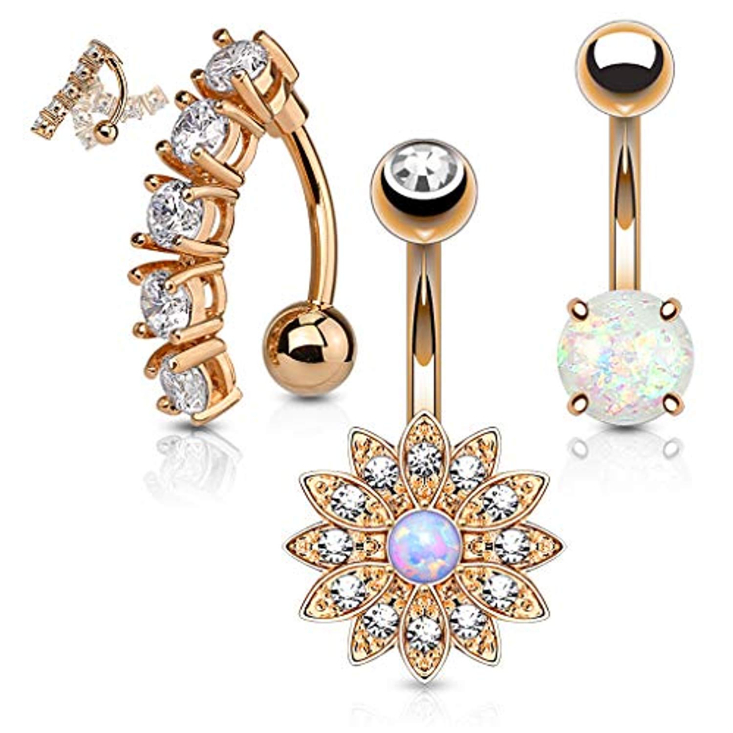 WildKlass 3 Pcs Pre Loaded Assorted 316L Surgical Steel Belly Navel Ring Gem Box Package