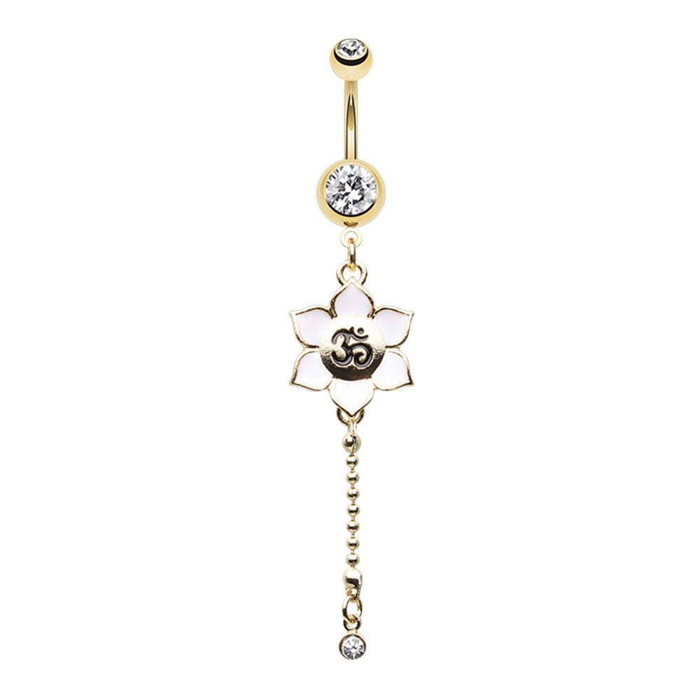 WILDKLASS Golden OM Nameste Flag Dangling Belly Button Ring