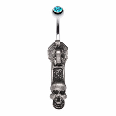 Zipper Skull Glam Belly Button Ring Lightweight and comfortable to wear Sold by Piece Materials: Surgical Steel Thickness: 14 GA, Length: 10mm